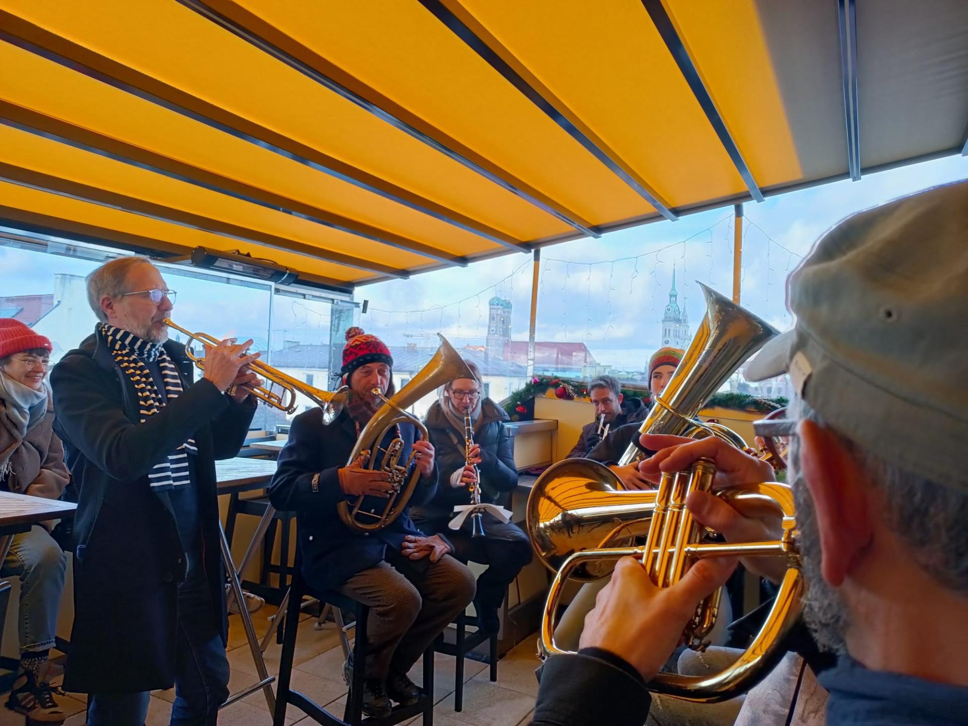 Diese Session wird eröffnet von den „Original Glockenbachern“. Einer Gruppe die sich am 15. Dezember gegründet hat im Rahmen des Seminars „A Guads Neis Johr“. Sie ziehen von Haus zu Haus, blasen für euch durch die Straßen und wünschen allen ein Gutes neues Jahr und viel Glück.
